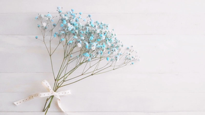 青いかすみ草は、「清い心」「無邪気」といった花言葉をもっています。誕生日プレゼントにもおすすめです♪